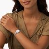Montre Fossil femme de la collection Tillie Mini , mouvement quartz, 3 aiguilles, boitier en acier inoxydable argent de 26mm avec un cadran blanc  sur bracelet en acier inoxydable argent.